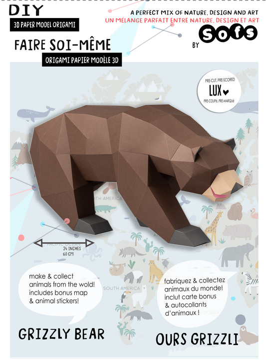 DIY Brown Grizzly Bear 3D Origami paper model Kit