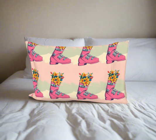 Bed Pillow case Pink Ski boot flower bloom