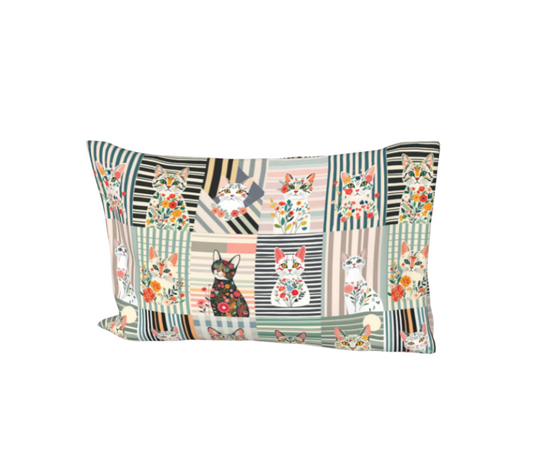 Bed Pillow case pillow Sleeve in Stripe Botanical Cat collage