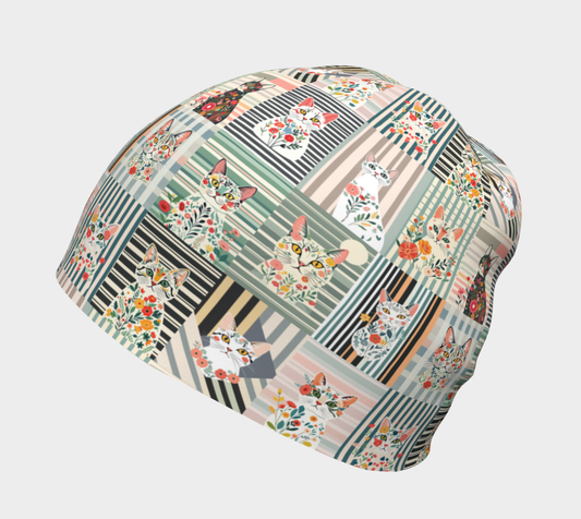 Beanie with unique Botanical Stripe Cat collage made in Canada