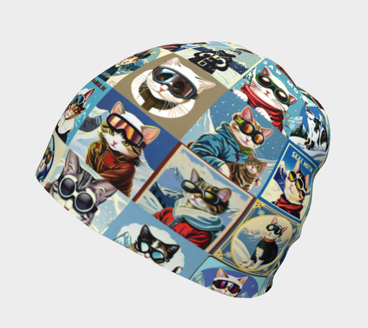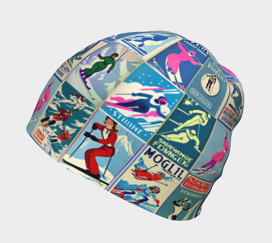 Beanie Hat with pur collage vintage Quebe Ski posters made in Canada
