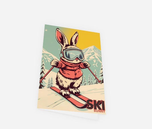 Bunny Ski theme Greeting Card, blank inside for any occasion comes with enveloppe