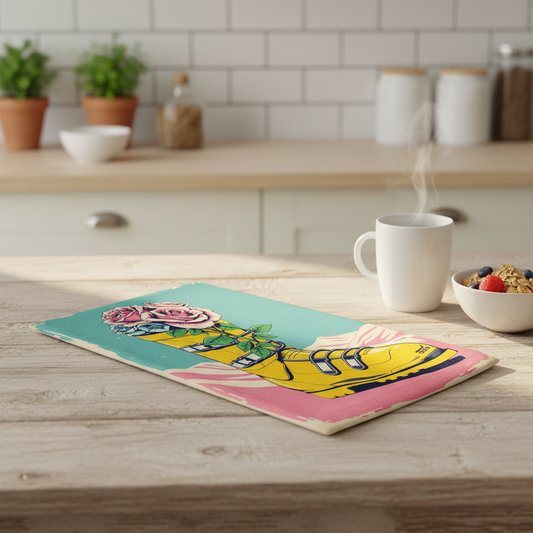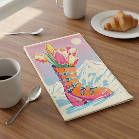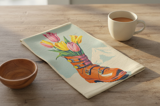 Tea Towels Medium size 12 x 16 in Floral Ski boot in tulips , Made cotton linen