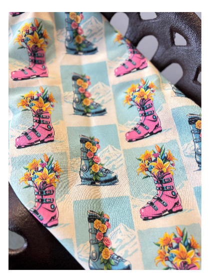 Tea Towels Medium size 12 x 16 in Floral Ski boot in sun set , Made cotton linen