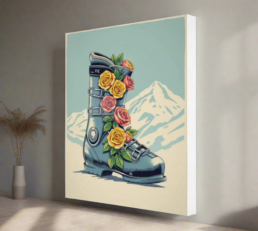 Poster Blue Ski boot in Floral Roses ,made in montreal Canada