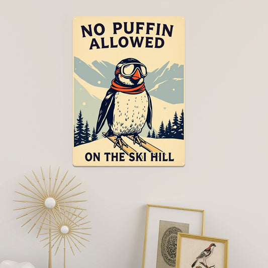 Metal Tinplate Poster Rectangular 12 inches by 16 inches Metal Sign Decor in No puffin on Ski Hill