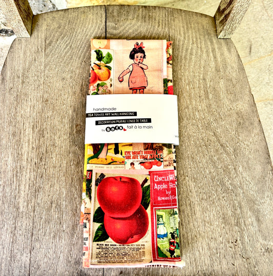 Tea towel wall art in Apple love designed with Vintage apple artwork
