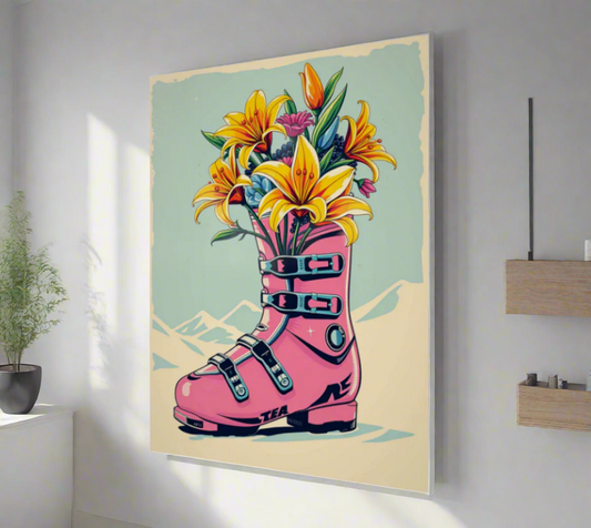 Poster Pink Ski boot in Floral bloom ,made in montreal Canada