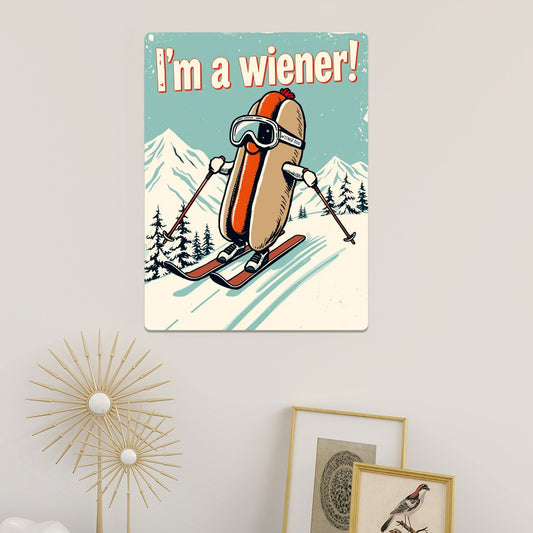 Metal Tinplate Poster Rectangular 12 inches by 16 inches Metal Sign Decor in I'm a Wiener on Ski