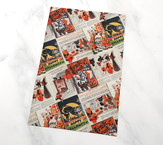 Torchon mural vintage Halloween Collage 100% coton lin