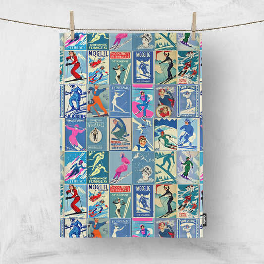 Torchon de cuisine pour décoration d'intérieur de style vintage Art de collage de skieurs masculins Art pour votre cuisine ou à accrocher sur vos murs
