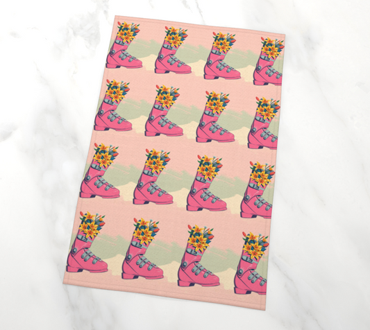 Torchon rose fleur de chaussure de ski