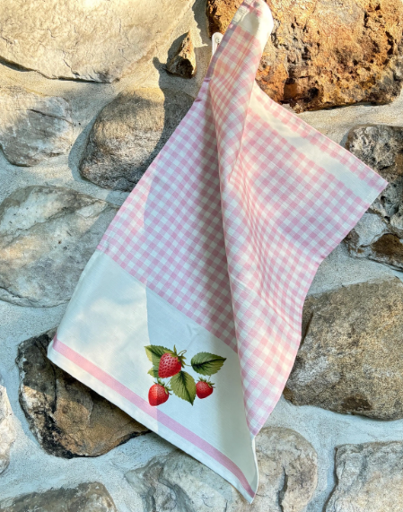 Torchon de cuisine décoratif en vichy rose vintage Strawberry Art pour votre cuisine ou à accrocher sur vos murs