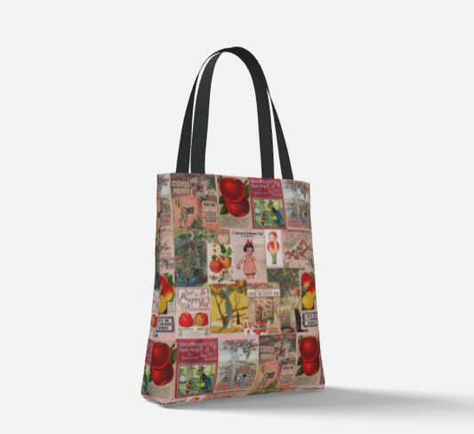 Tote canvas Collage d'art vintage sur les Pommes fabriqué à Montréal Canada