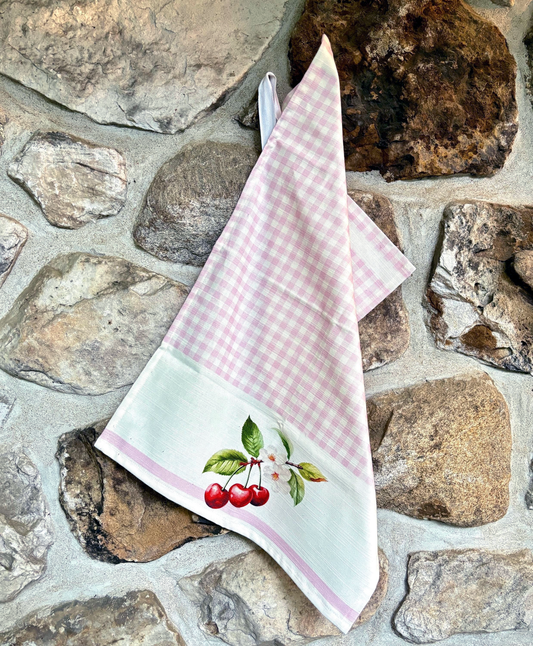 Torchon en vichy rouge vintage Cerises Art pour votre cuisine ou à accrocher sur vos murs