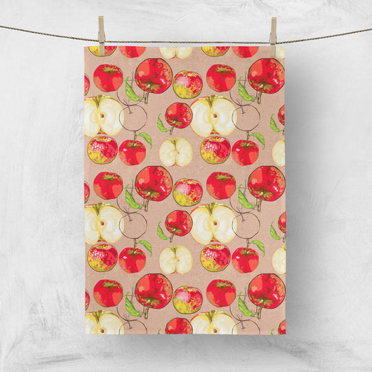 Torchon avec motif Pomme Love, conçue avec des illustrations vintage avec pommes pour votre cuisine ou à accrocher sur vos murs.