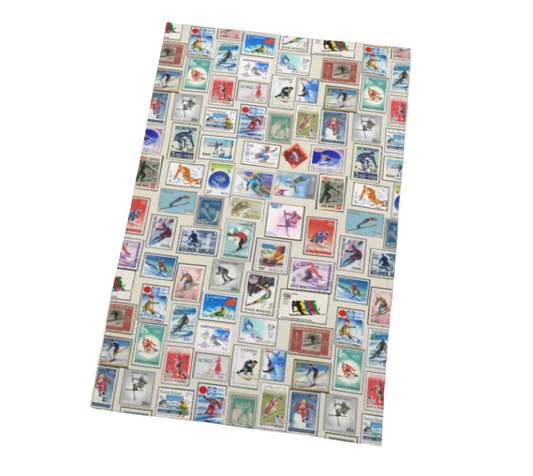 Torchon de cuisine décoratif pour la maison en collage de tampons de ski vintage pour votre cuisine ou à accrocher sur vos murs