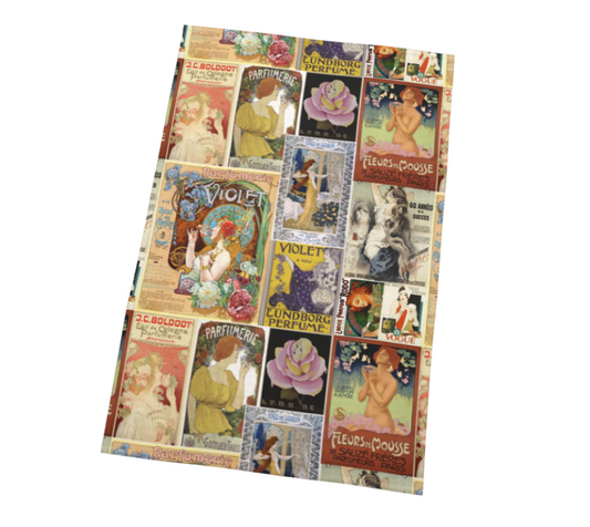Torchon de cuisine décoratif en Vintage Parfum Art Collage pour votre cuisine ou à accrocher sur vos murs