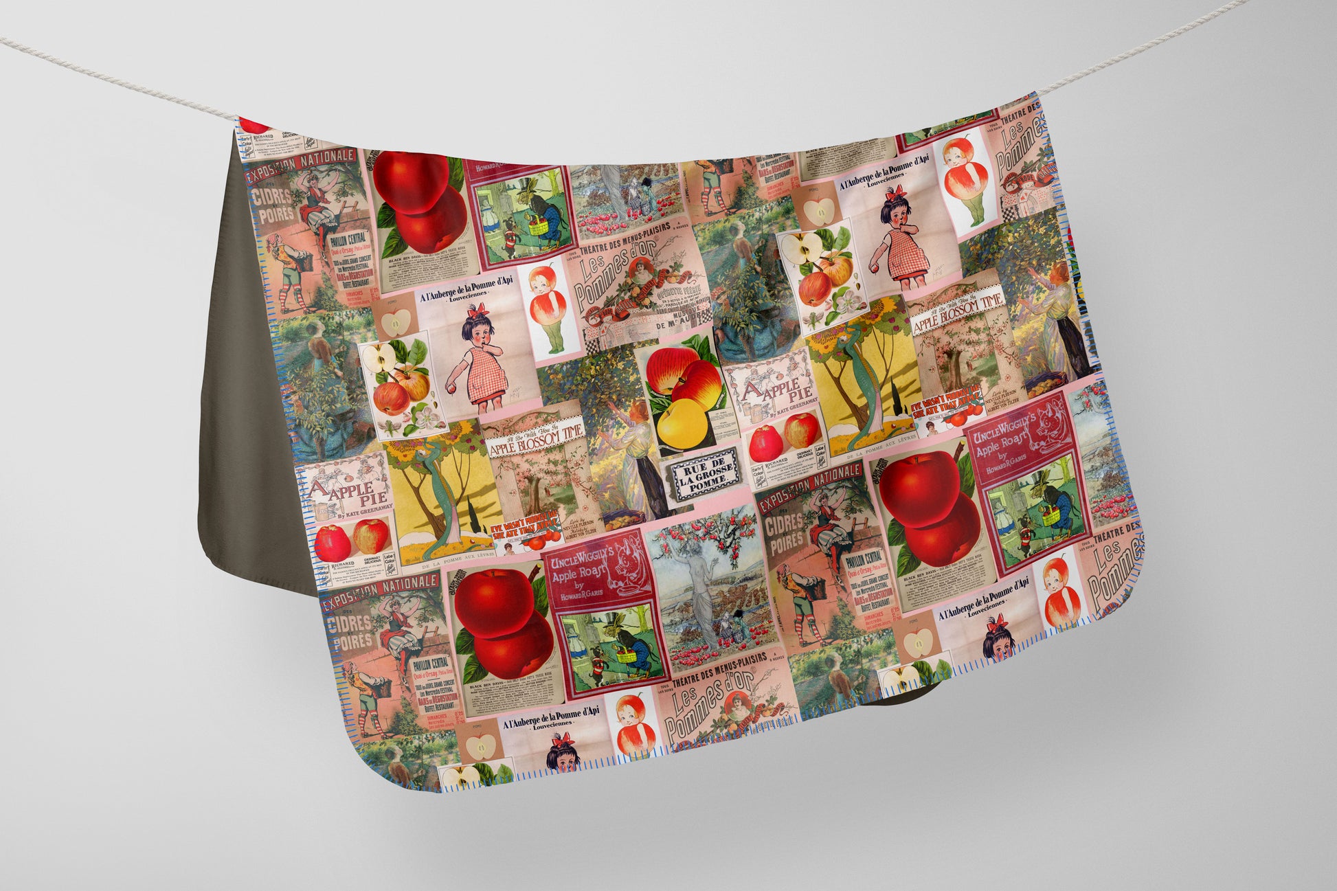 Couverture en amour de pomme vintage fabriquée à Montréal avec un tissu minky épais, doux et résistant au boulochage