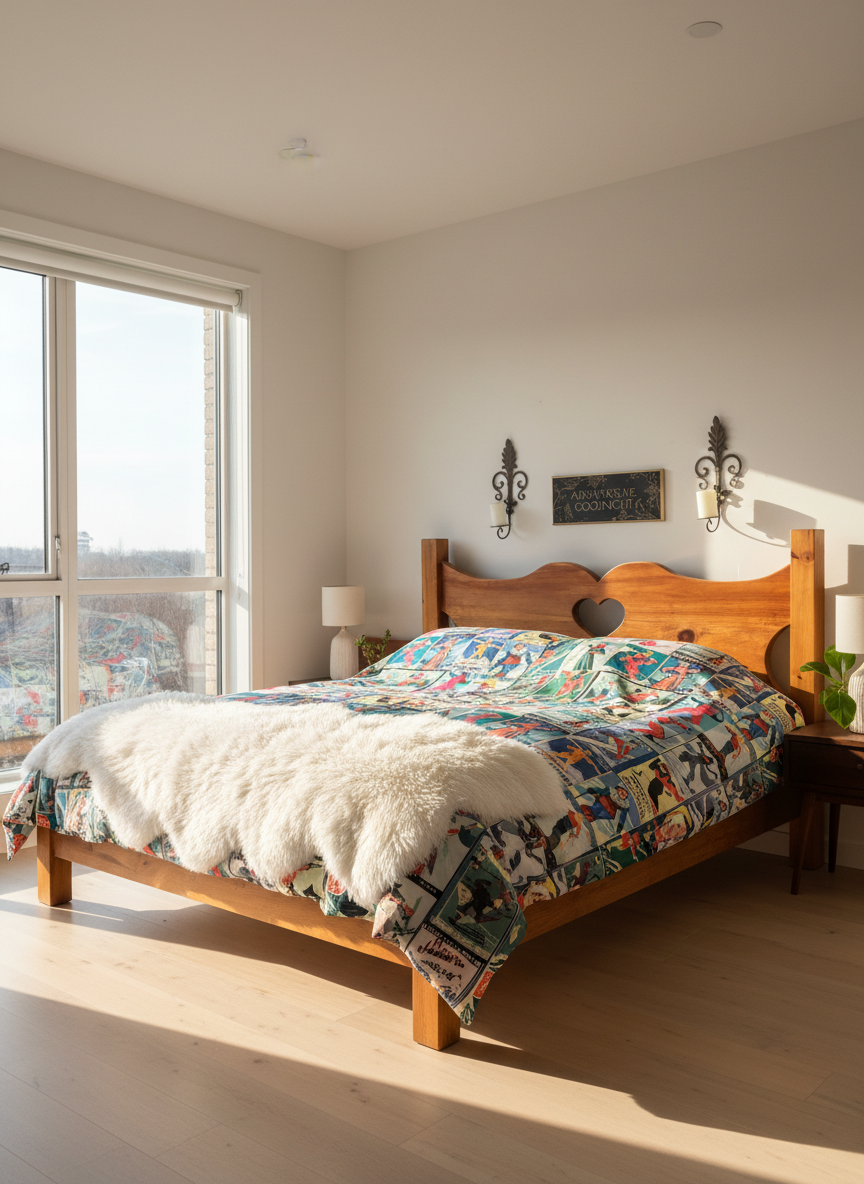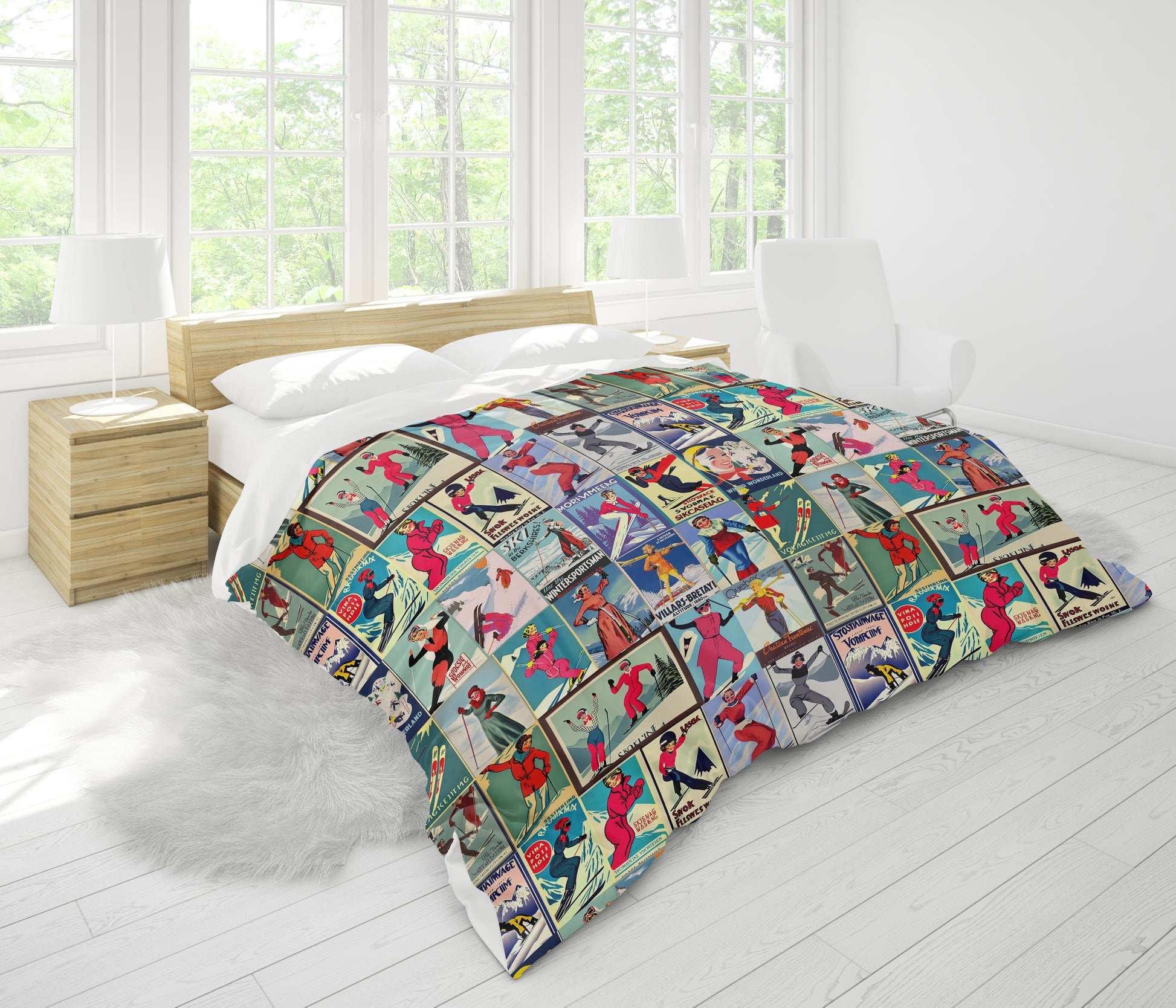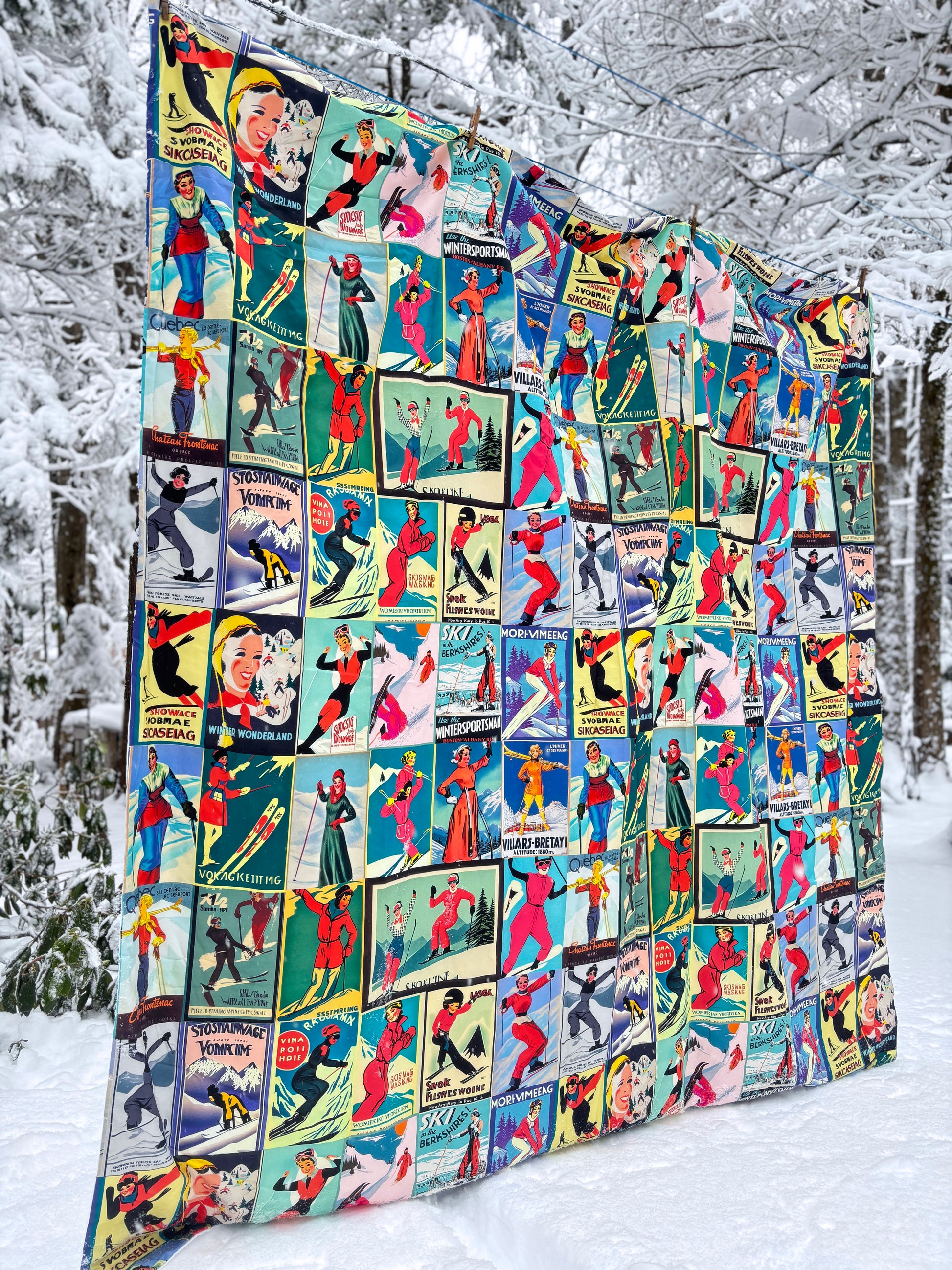 Housse de couette au style vintage femme Ski en rouge Collage pour le meilleur sommeil. Fabriqué en 100% coton de qualité au Canada