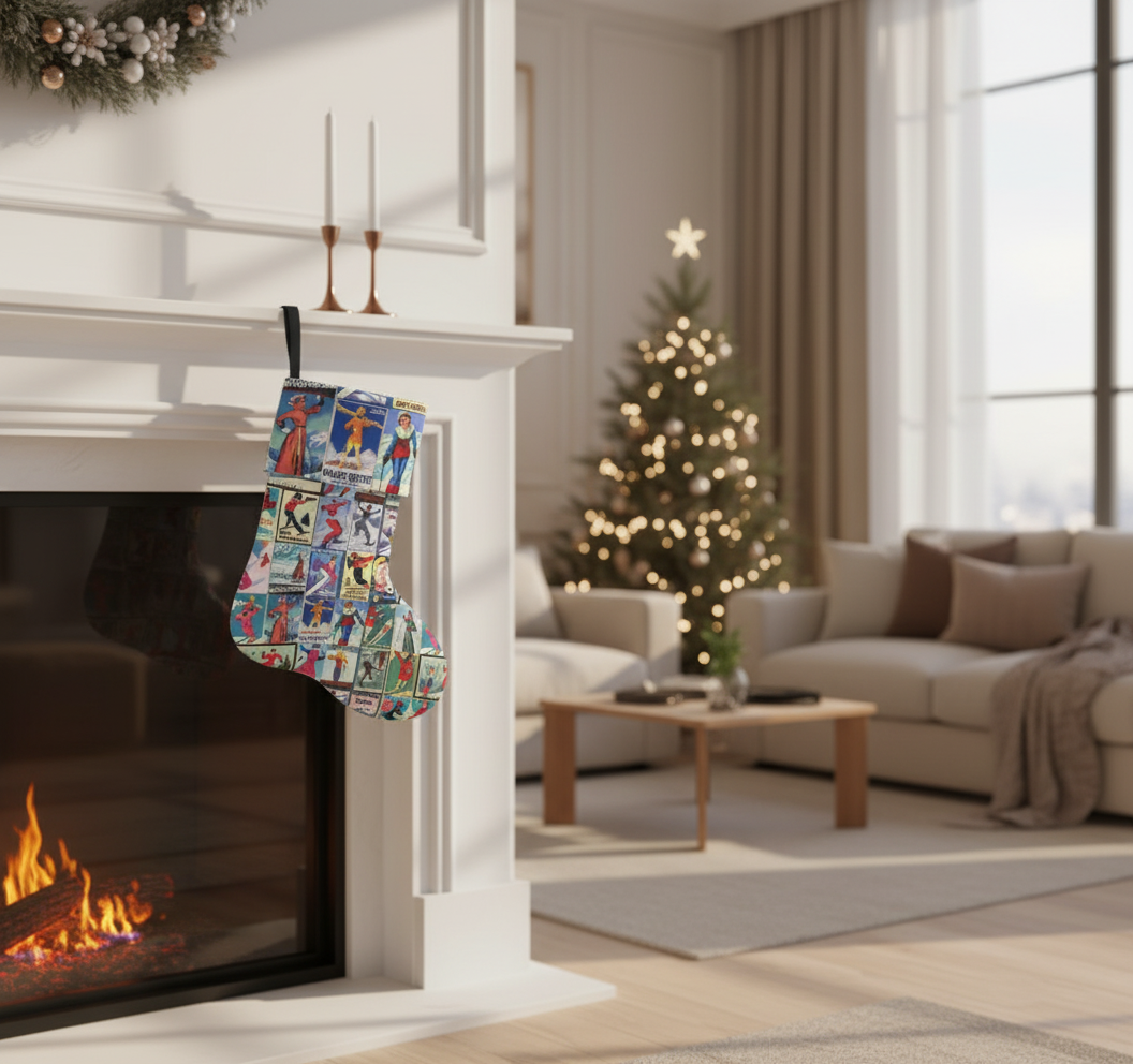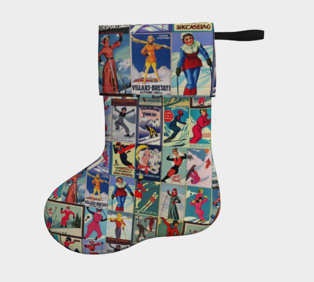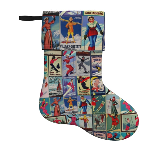 Bas de Noël en inspiration vintage Ski Collage Fabriqué au Canada
